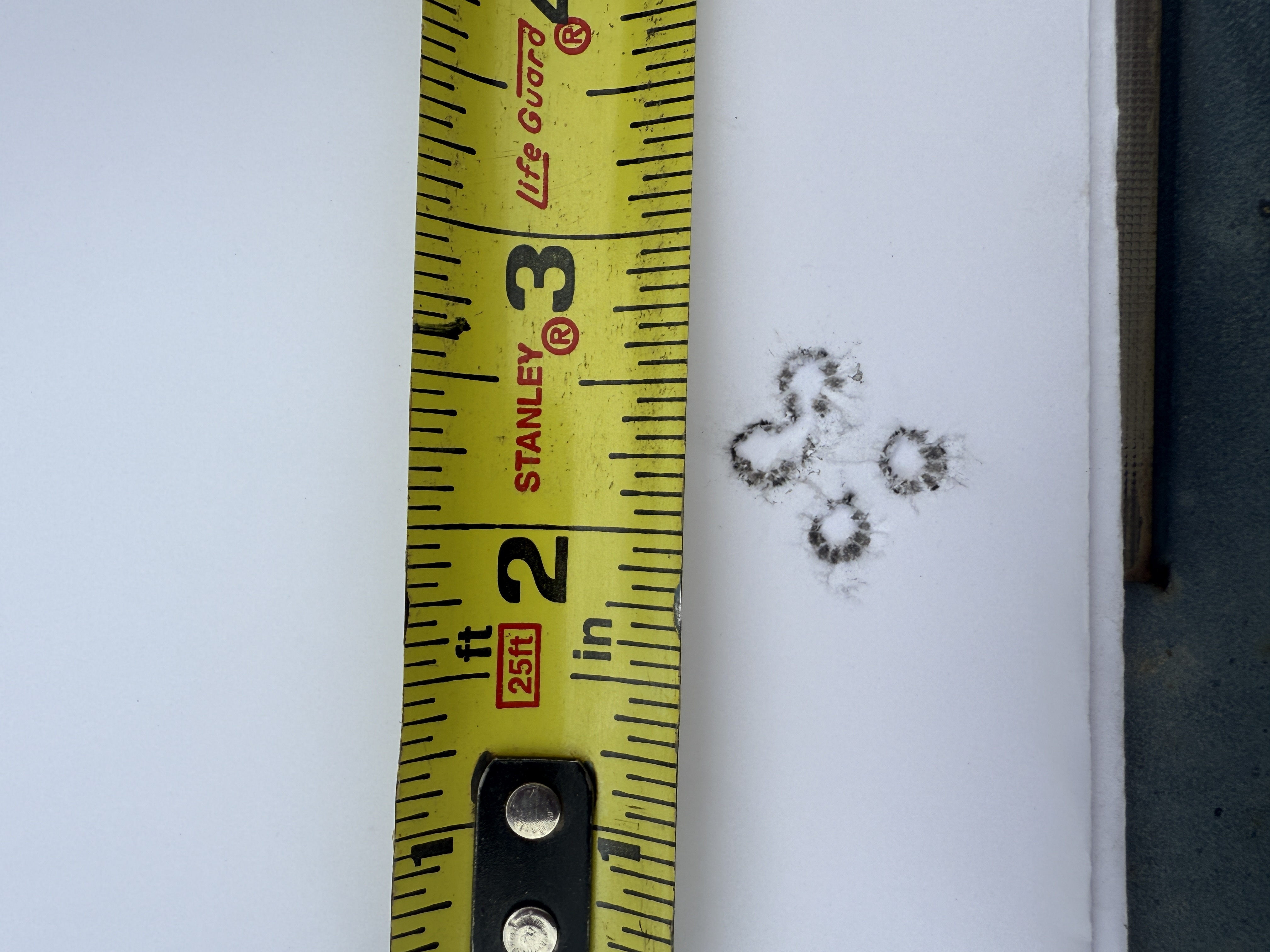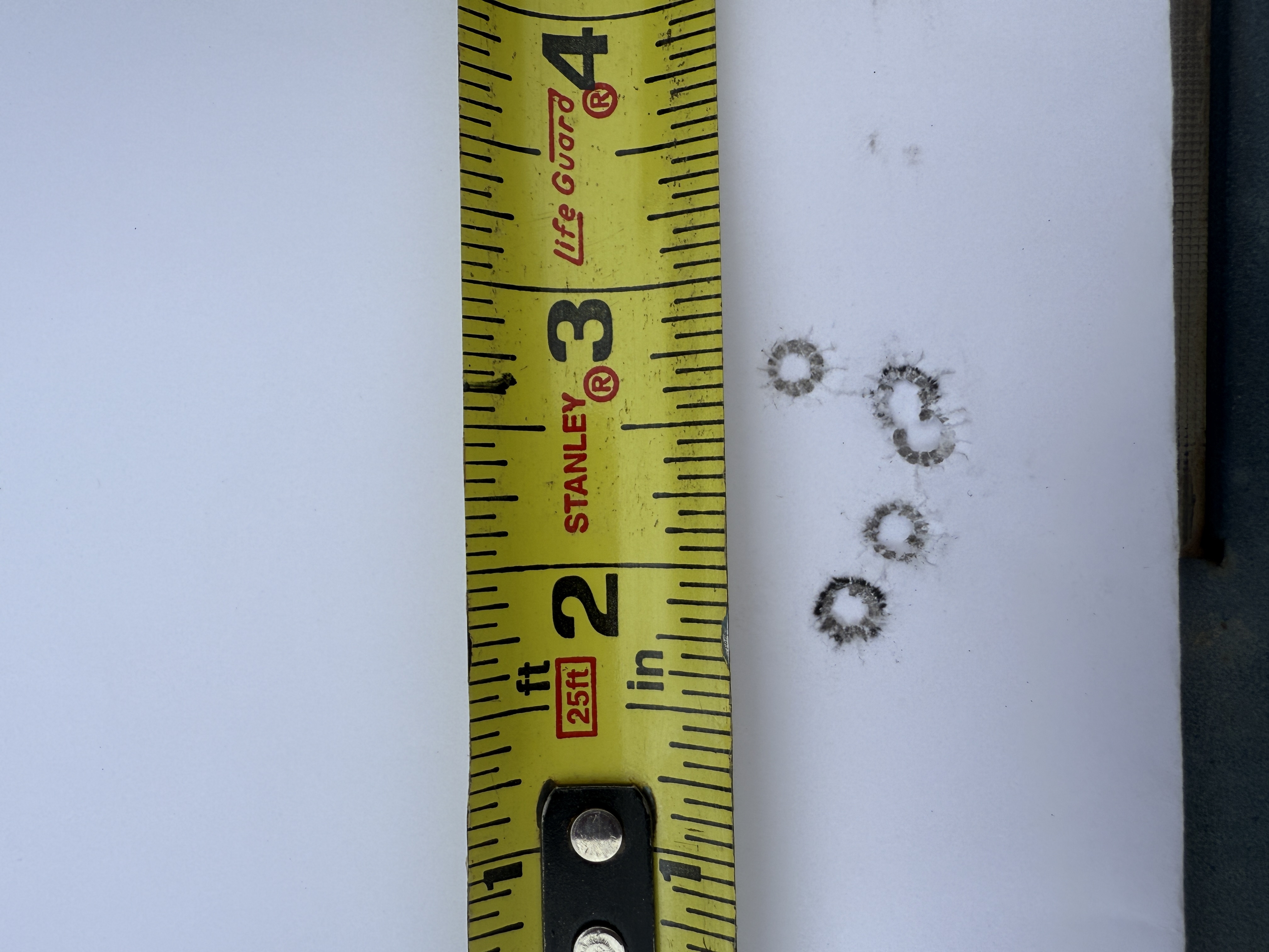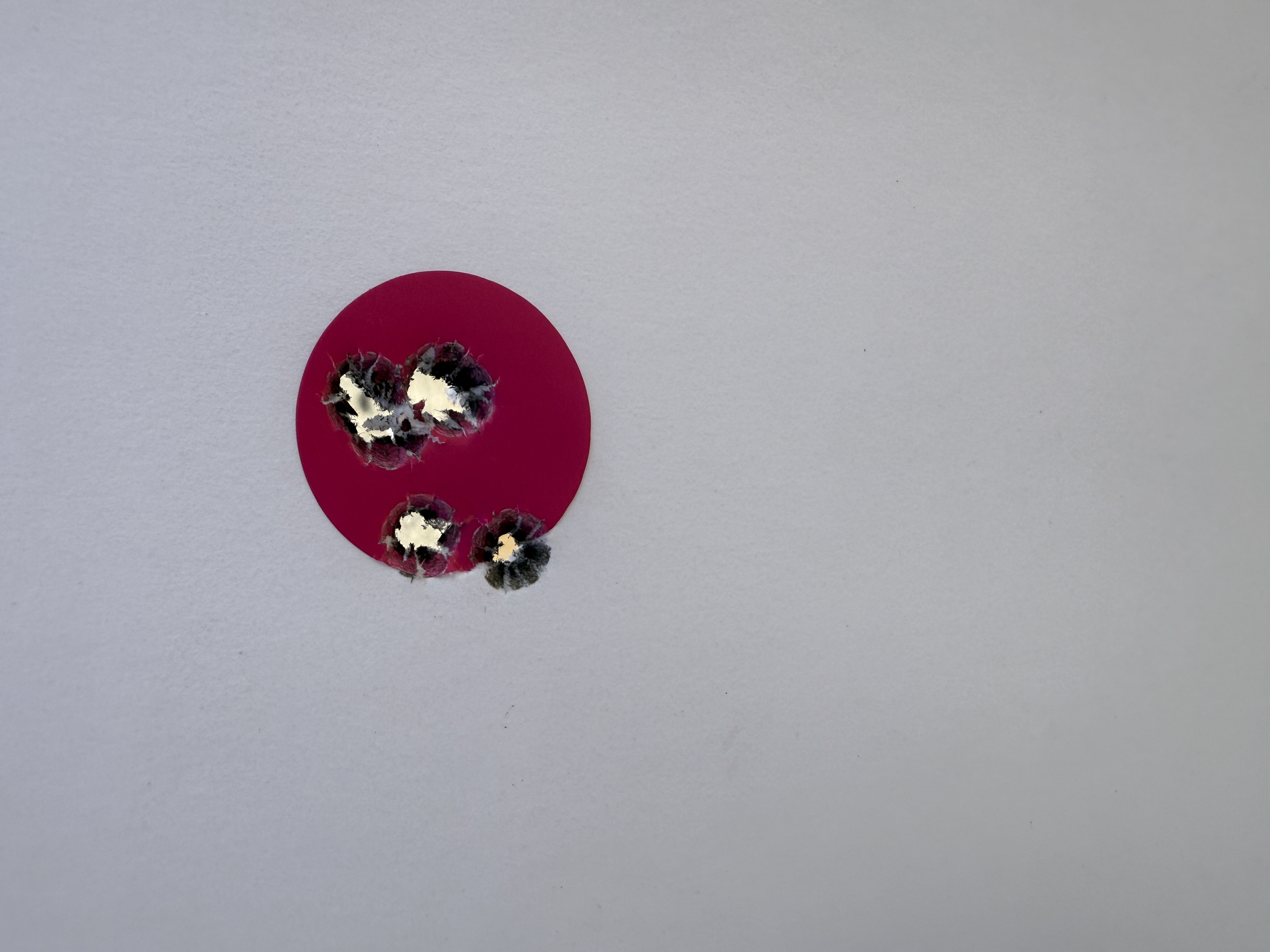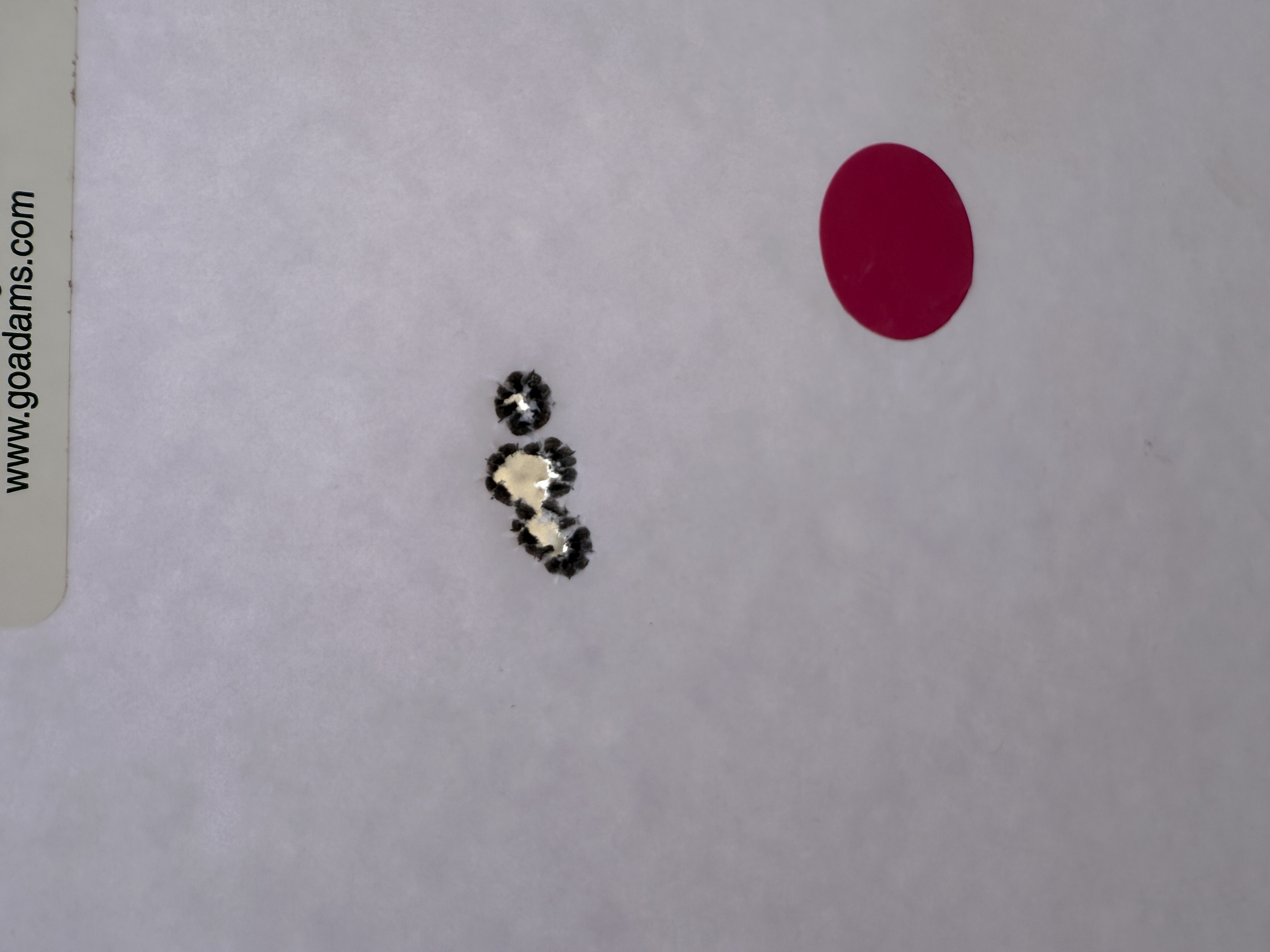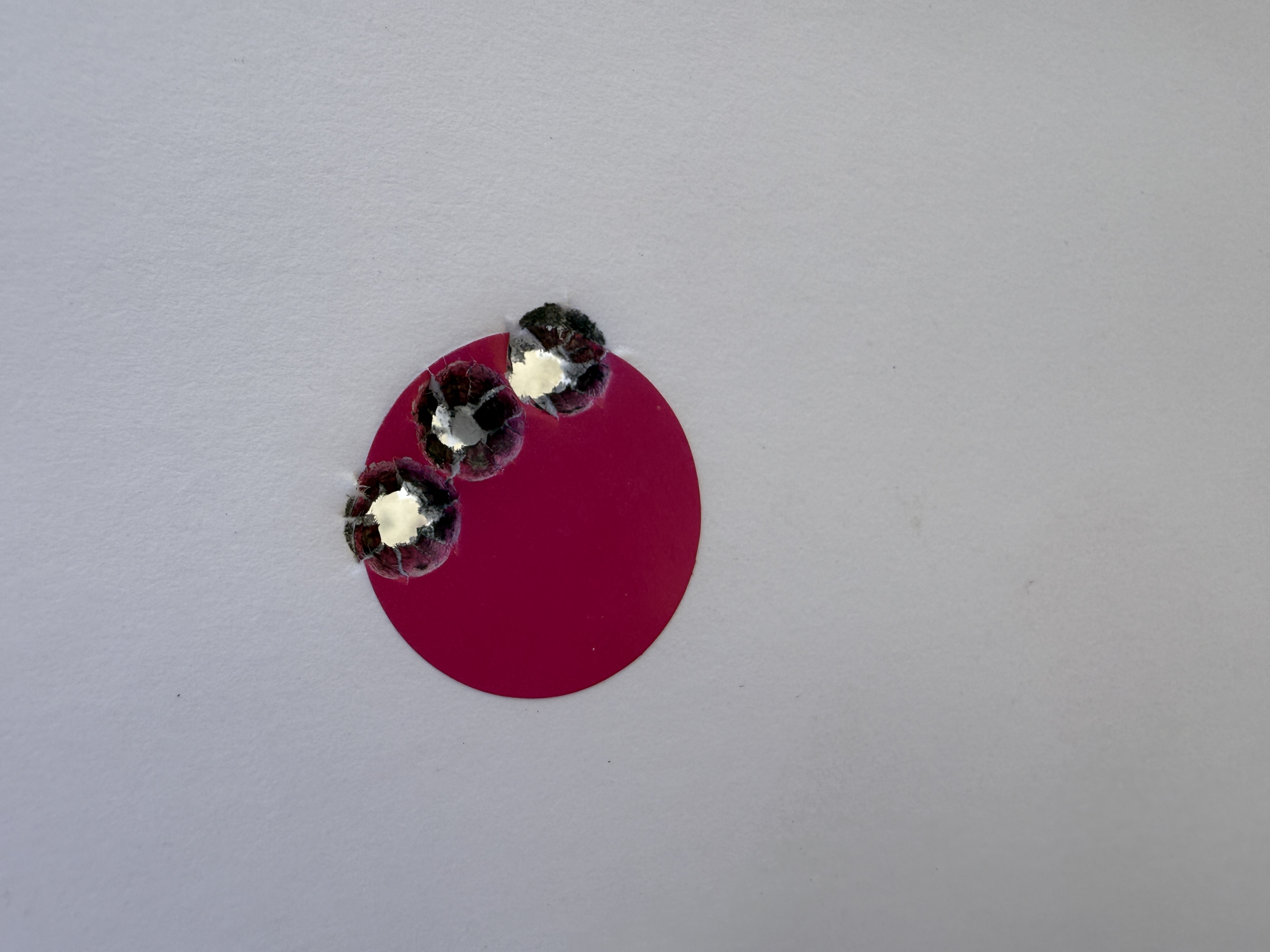 We shot a total of six rounds of 5 shot groups with a cover sheet for each 5 shot group over the same backer.