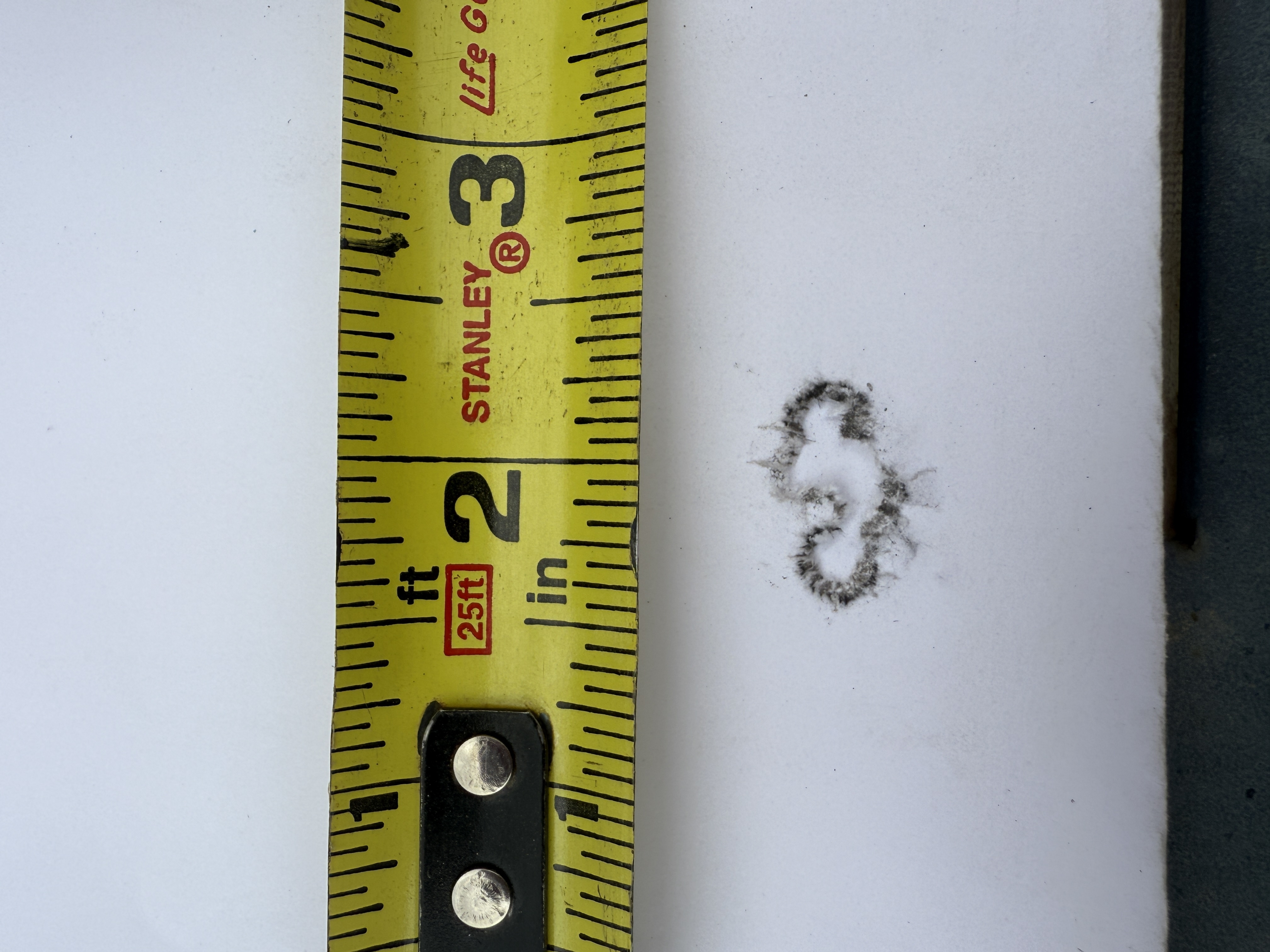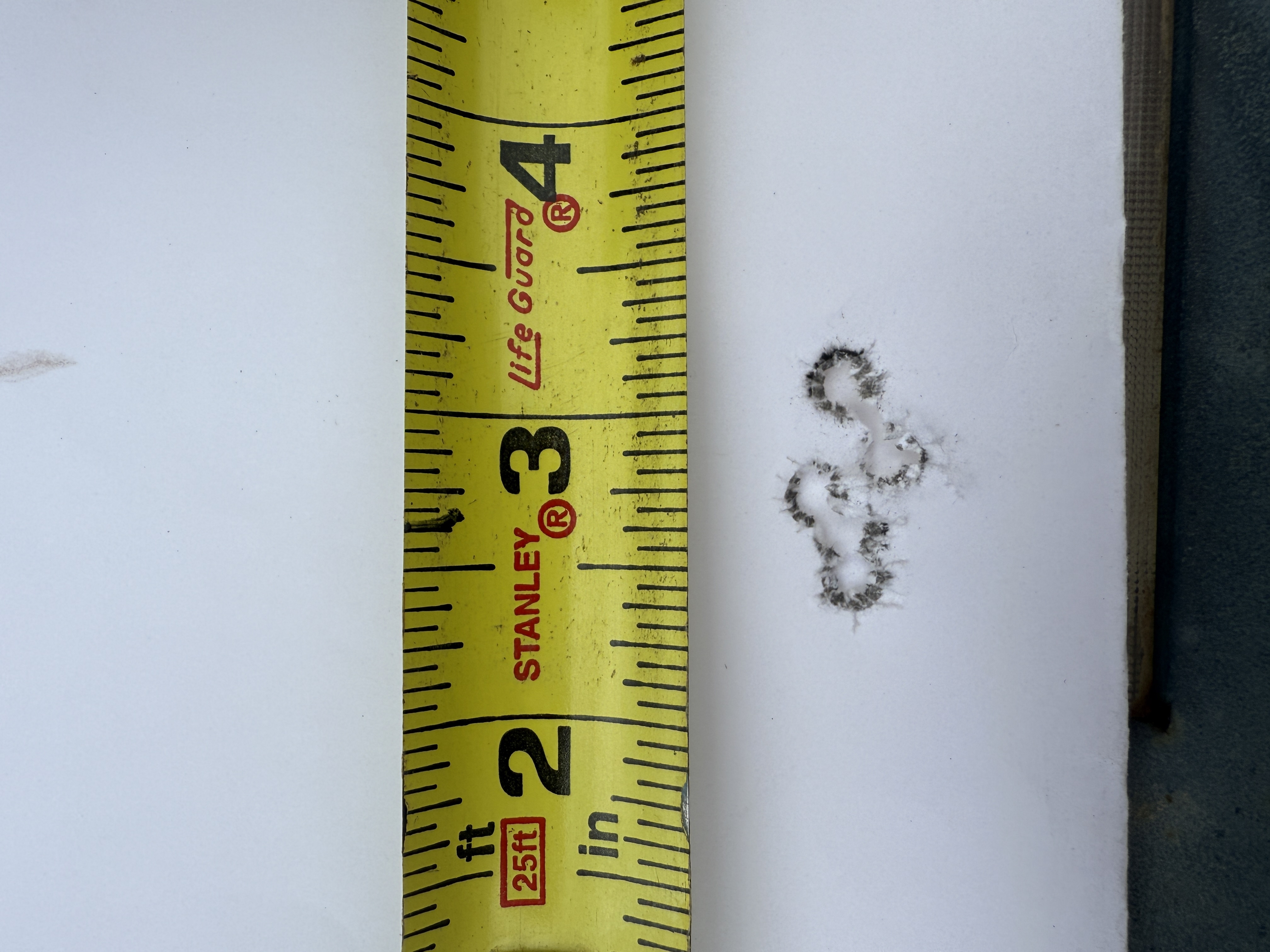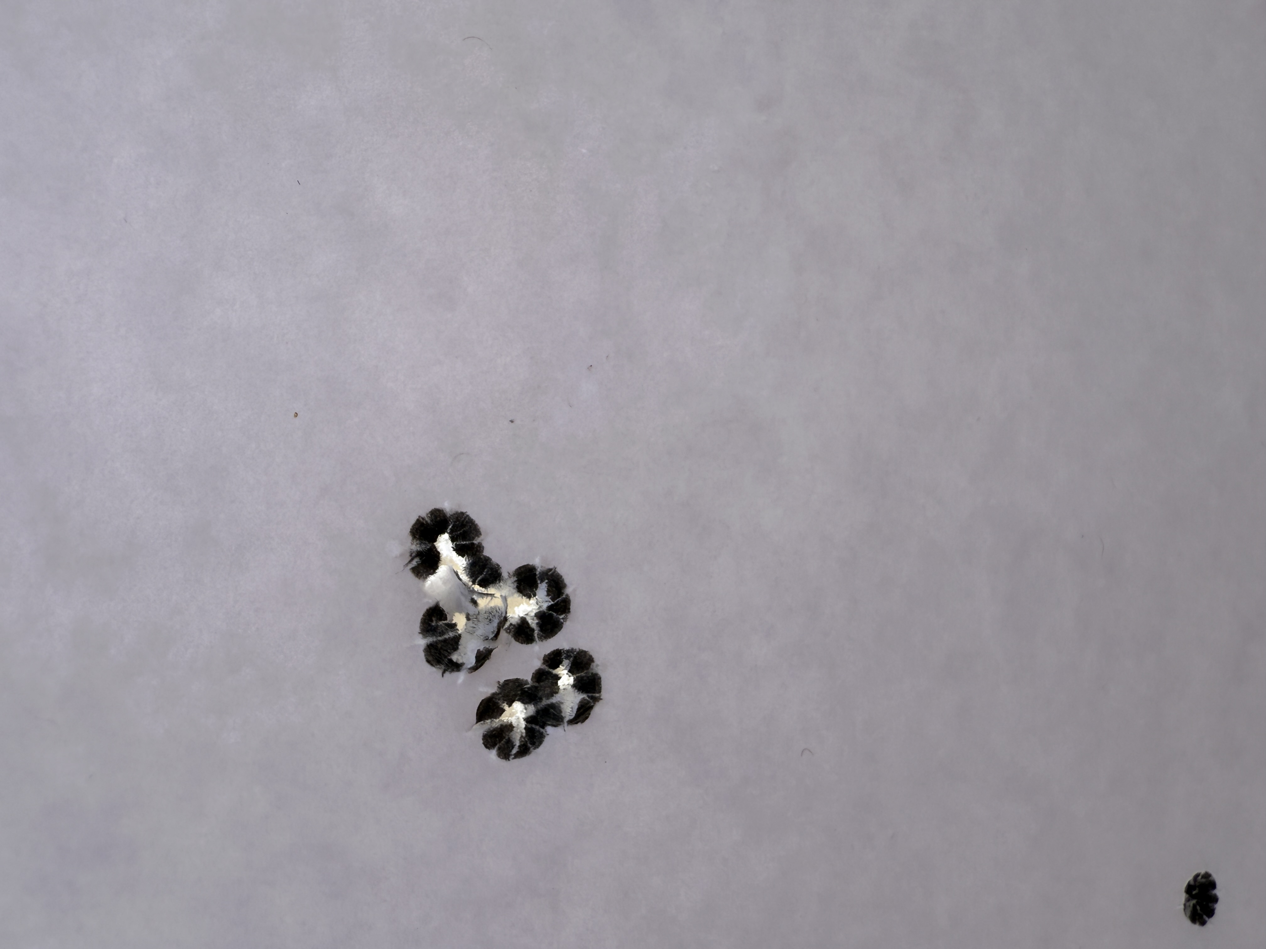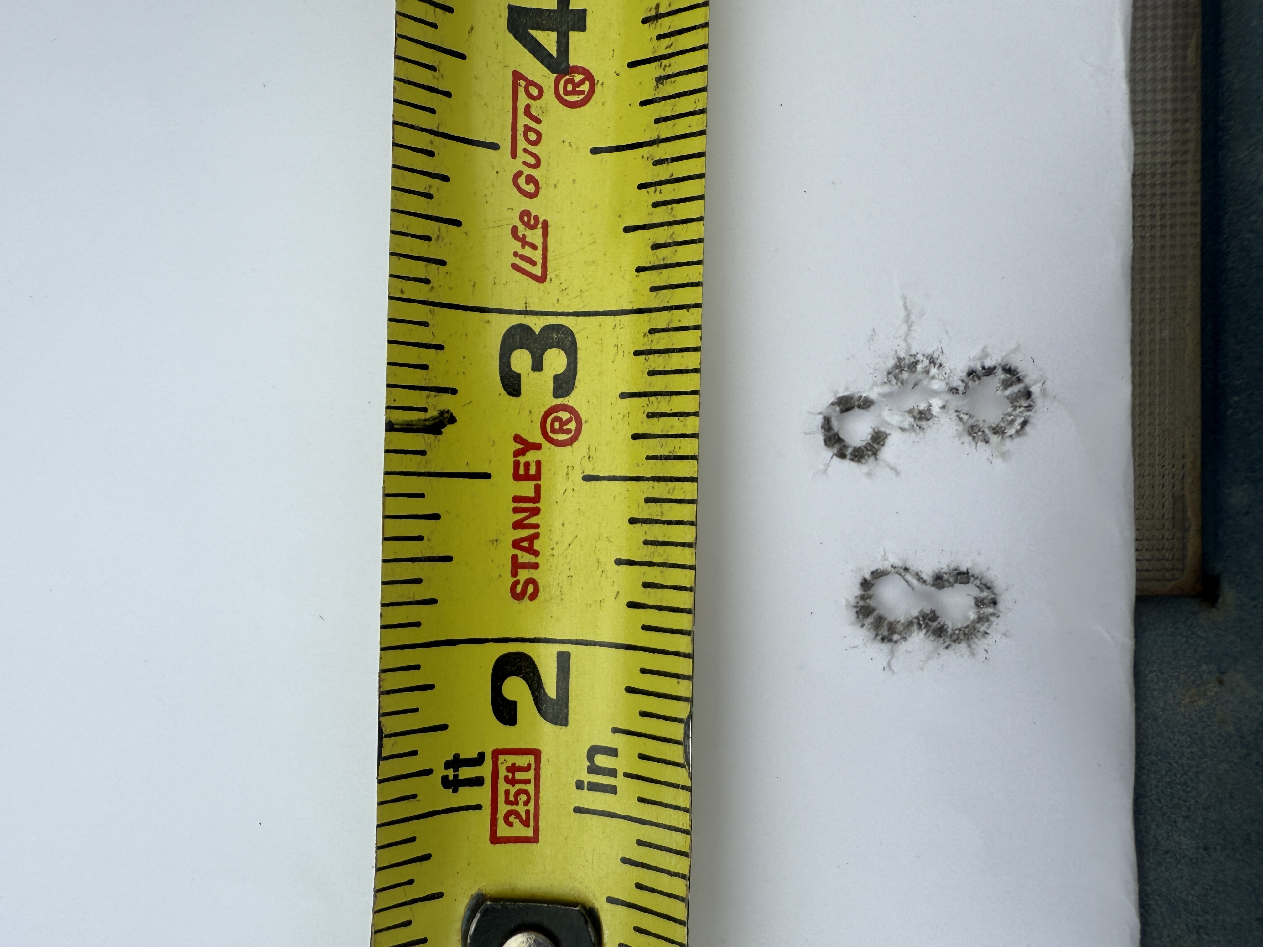 We shot a total of six rounds of 5 shot groups with a cover sheet for each 5 shot group over the same backer.